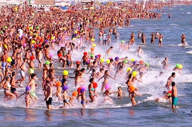 Versilia, in 10 mila al tuffo con la parrucca per l’ospedale Meyer