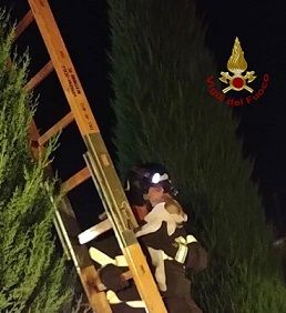 Ponticino (Ar): Vigili del fuoco salvano cane che non riusciva a scendere dall’albero