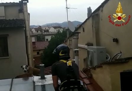 Firenze: vigili del fuoco salvano cane bloccato sul tetto