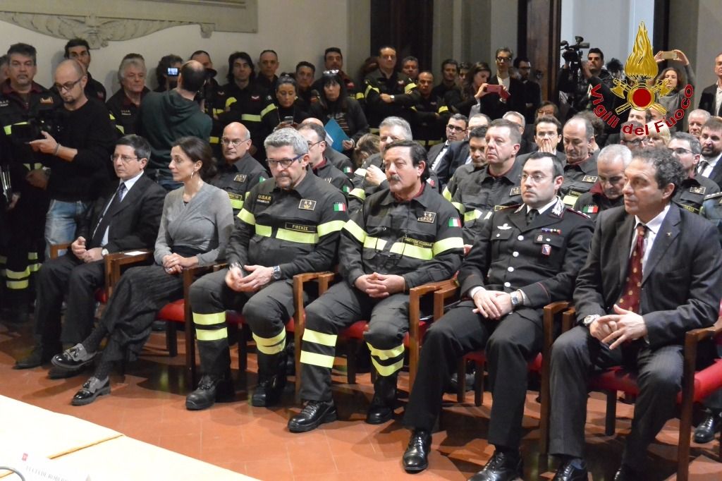 Per i vigili del fuoco, oltre al direttore regionale erano presenti numerosi comandanti e funzionari dei comandi provinciali oltre ai 60 operatori USAR della Toscana