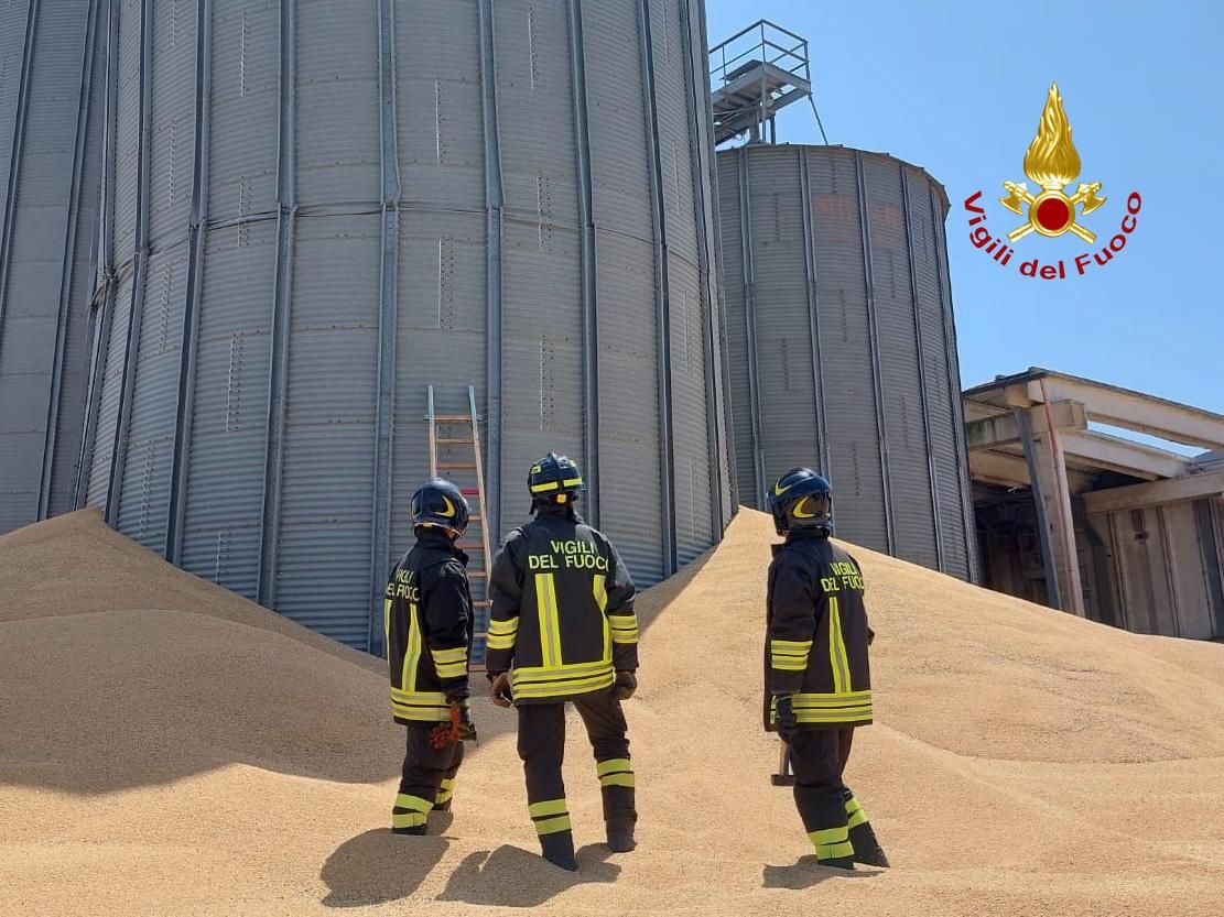 Grosseto: silos di grano a rischio crollo. Intervento dei vigili del fuoco per lo svuotamento di 4500 quintali (foto)