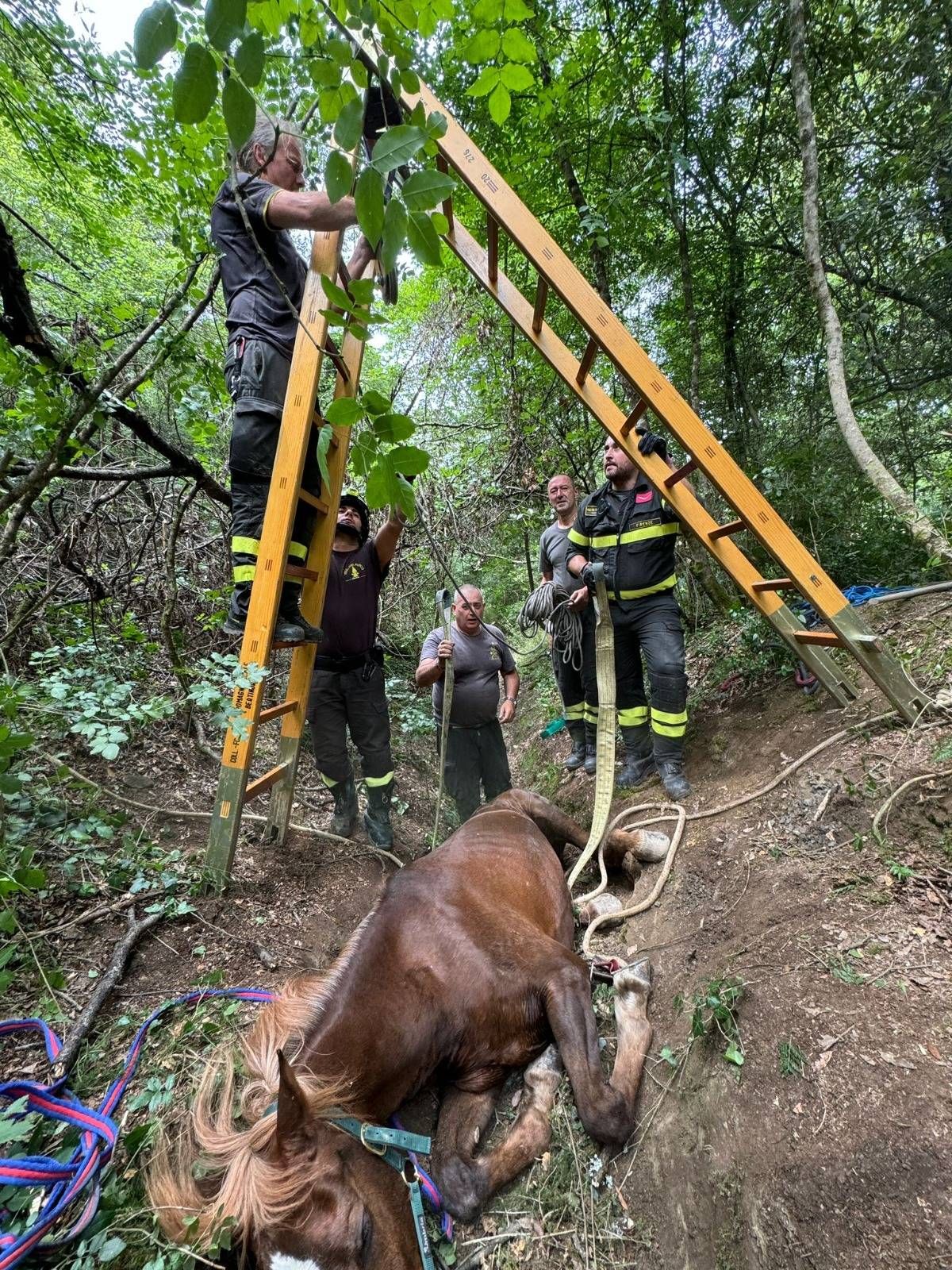 Firenze: cavallo cade in un fosso in Terzollina. Salvato dai vigili del fuoco