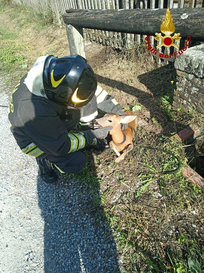 Coreglia Antelminelli: capriolo intrappolato in una recinzione salvato dai vigili del fuoco