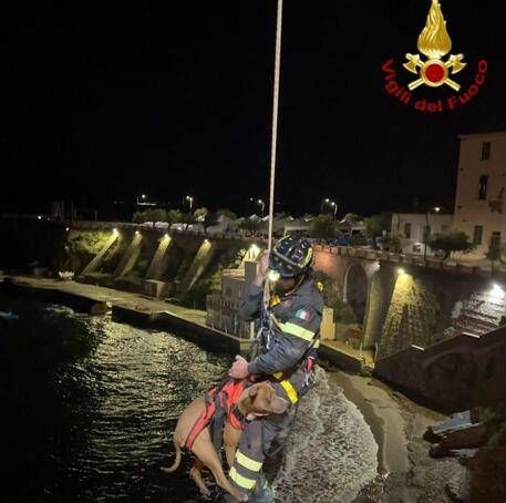 Piombino: cane pitbull cade nella scogliera. Salvato dai vigili del fuoco