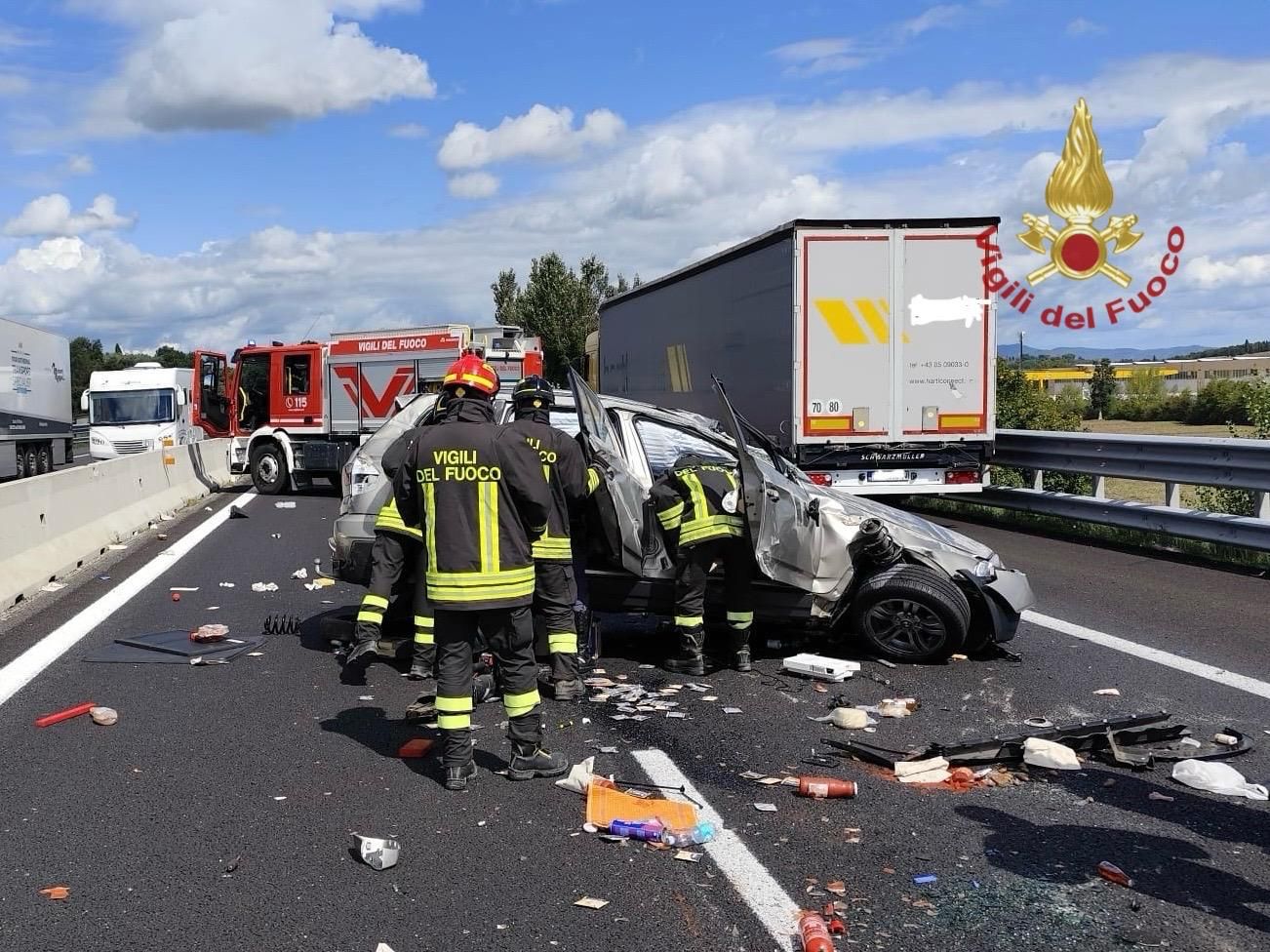 Incidente oggi, 11 settembre 2025, sull'Autostrada A1 nel tratto aretino. I vigili del fuoco del comando di Arezzo sono intervenuti alle 12.30 al km 378 in Direzione Nord