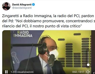 David Allegranti, giornalista fiorentino, sulla sua pagina twitter, riporta (con filmato e audio) un clamoroso infortunio, significativo, del segretario del Pd Zingaretti